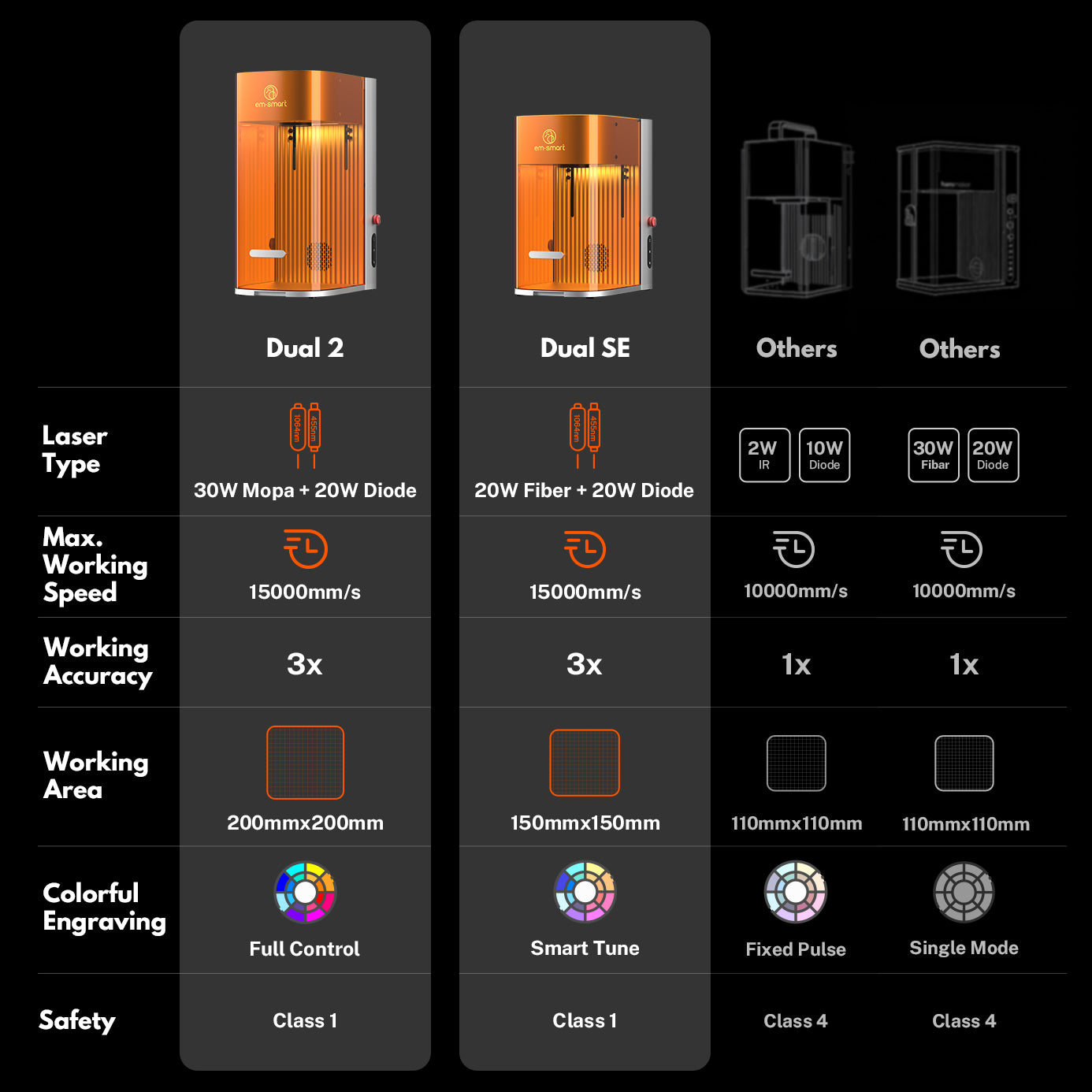 Class 1 dual-laser with protective enclosure, safety interlock, and emergency stop — CE & FDA certified for worry-free DIY and professional use.