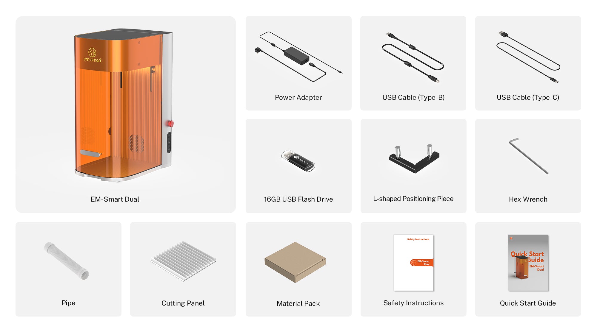 No additional purchase is needed. The EM-Smart Dual comes with a built-in LightBurn version. Besides, one LightBurn license can covers all EM-Smart desktop laser engravers.