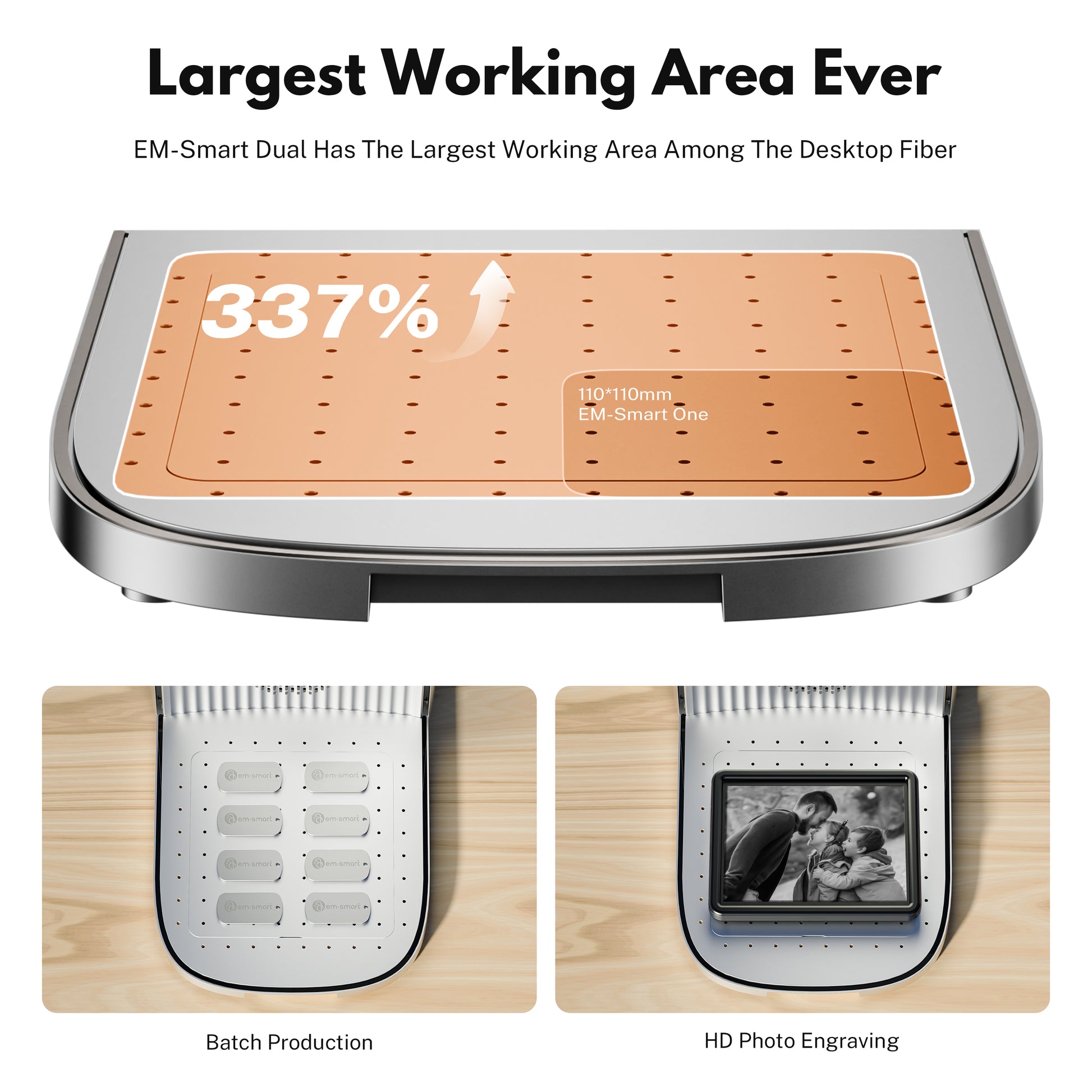 The EM-Smart Dual features a 20W fiber and 20W diode dual-source system integrated into one machine.