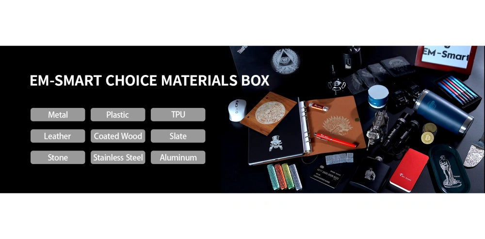 EM-Smart's laser material kit includes a selection of materials for engraving. Ideal for experimenting with different substrates for laser engraving projects.