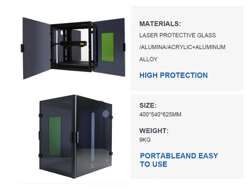 Foldable laser safety enclosure for EM-Smart Basic, MOPA, and Super series. Ensures safe laser operation for all your engraving and marking needs.