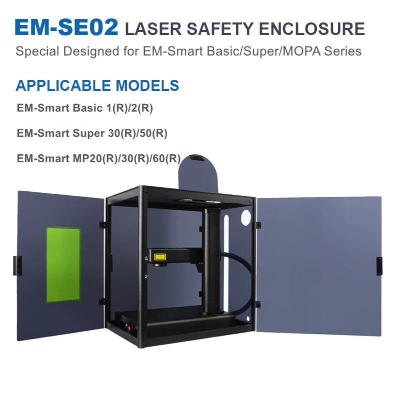 Laser safety enclosure for EM-Smart Basic, EM-Smart Mopa and EM-Smart Super.